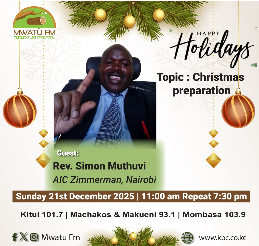December 24, 2025 Mixed Farming: More Than Just Crops and Co... Topic: Mixed Farming: More Than Just Crops and Cows Guest: Felix Komu (Mixed Farmer) Play 55:12 December 23, 2025 Thanksgiving for 2025 Guest: Rev. Simon Muthuvi (AIC Zimmerman, Nairobi) Topic: Thanksgiving for 2025 Play 13:27 December 23, 2025 Christmas Preparation Guest: Rev. Simon Muthuvi (AIC Zimmerman, Nairobi) Topic: Christmas Preparation Play 18:06
